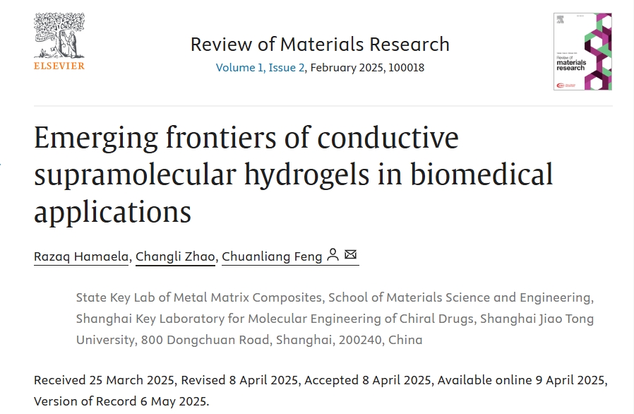 Concise Review | 冯传良团队:导电超分子水凝胶在生物医学应用中的新兴前沿