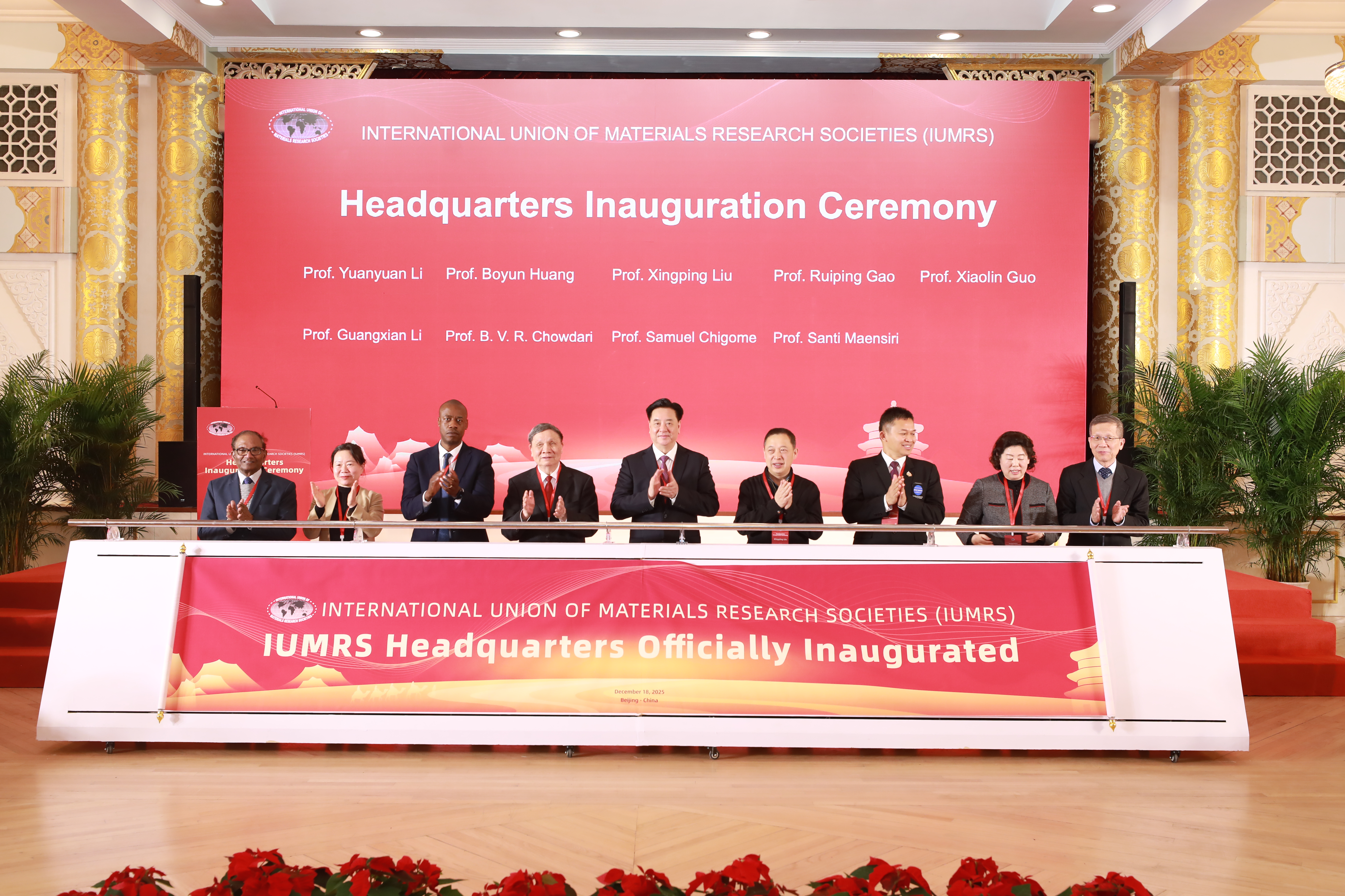 On the morning of December 18, 2025, the Inauguration Ceremony of the Headquarters of the International Union of Materials Research Societies (IUMRS) was solemnly held at the Beijing Friendship Hotel.