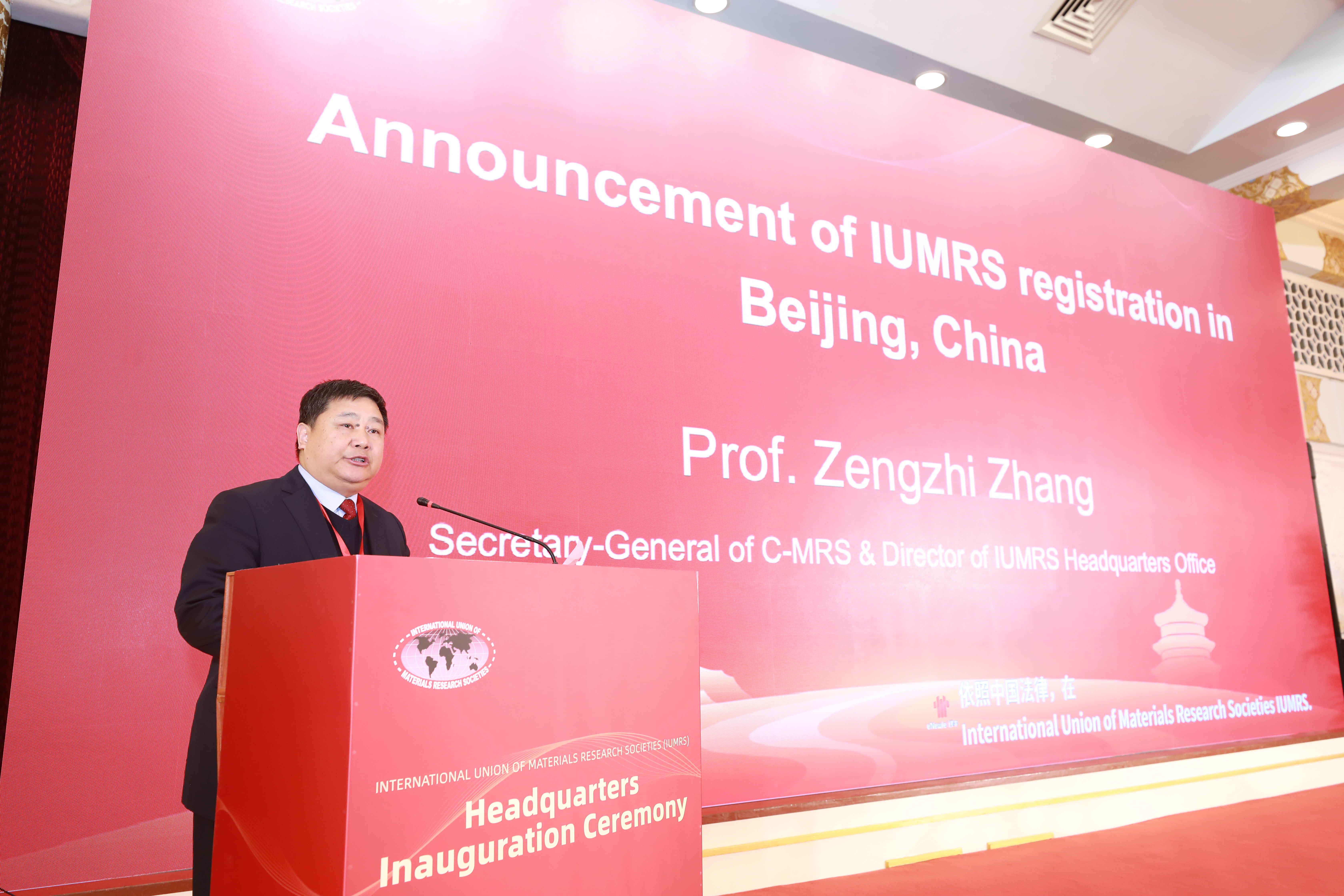 Immediately thereafter, Professor Zhang Zengzhi, Secretary General of C-MRS and Director of the IUMRS Headquarters Office, announced that IUMRS had formally completed its headquarters registration in Beijing in accordance with regulation of China.